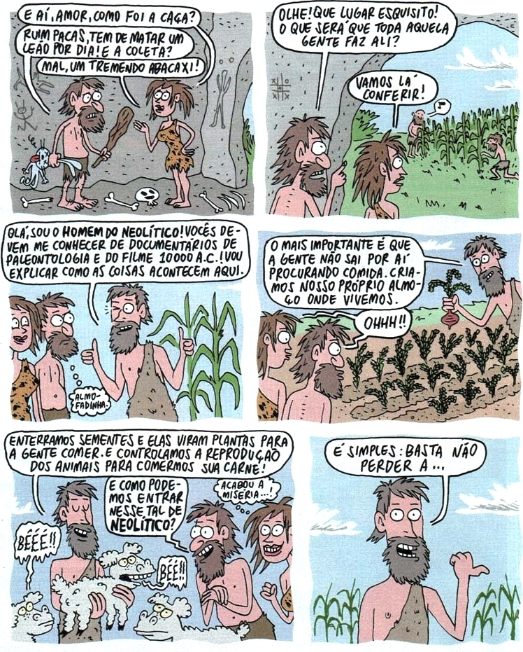 - O neolítico iniciou por volta de 12.000 anos, os humanos passaram a polir as pedras usadas nas ferramentas. Os humanos passaram a domesticar alguns animais (cabra, boi, porco, galinha, cachorro).